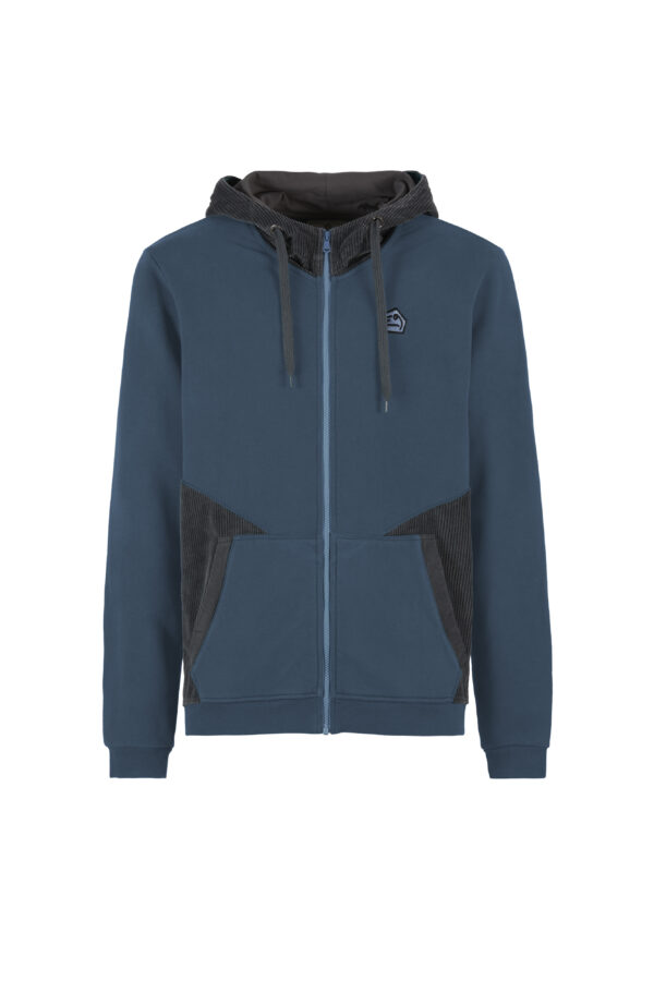 Questa felpa con cappuccio aperta sul davanti è realizzata in cotone biologico, che offre comfort e libertà di movimento. Presenta un ricamo dettagliato sul lato cuore,  cappuccio e dettagli frontali in velluto a coste. Progettata con una vestibilità regolare e orgogliosamente realizzata in Italia.