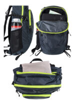 Zaino 22L, tessuto nylon 6 ROBIC® DWR con costruzione triple-ripstop, due tasche laterali in rete, tasca sopra con zip, tasca compatibile con sistemi di idratazione, ampia tasca frontale con zip, doppio laccio per piccozze e bastoncini, fibbie di chiusura.