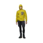 Strato intermedio da alpinismo più caldo con cappuccio e cerniera.